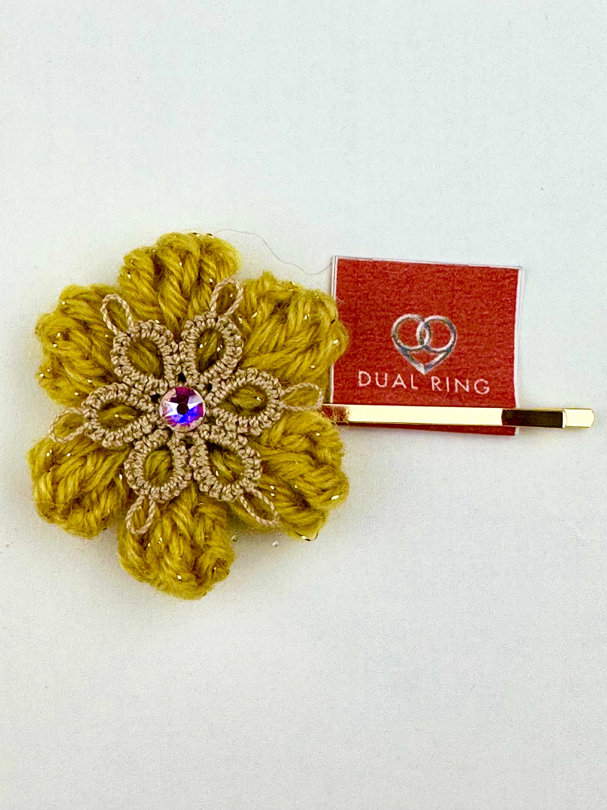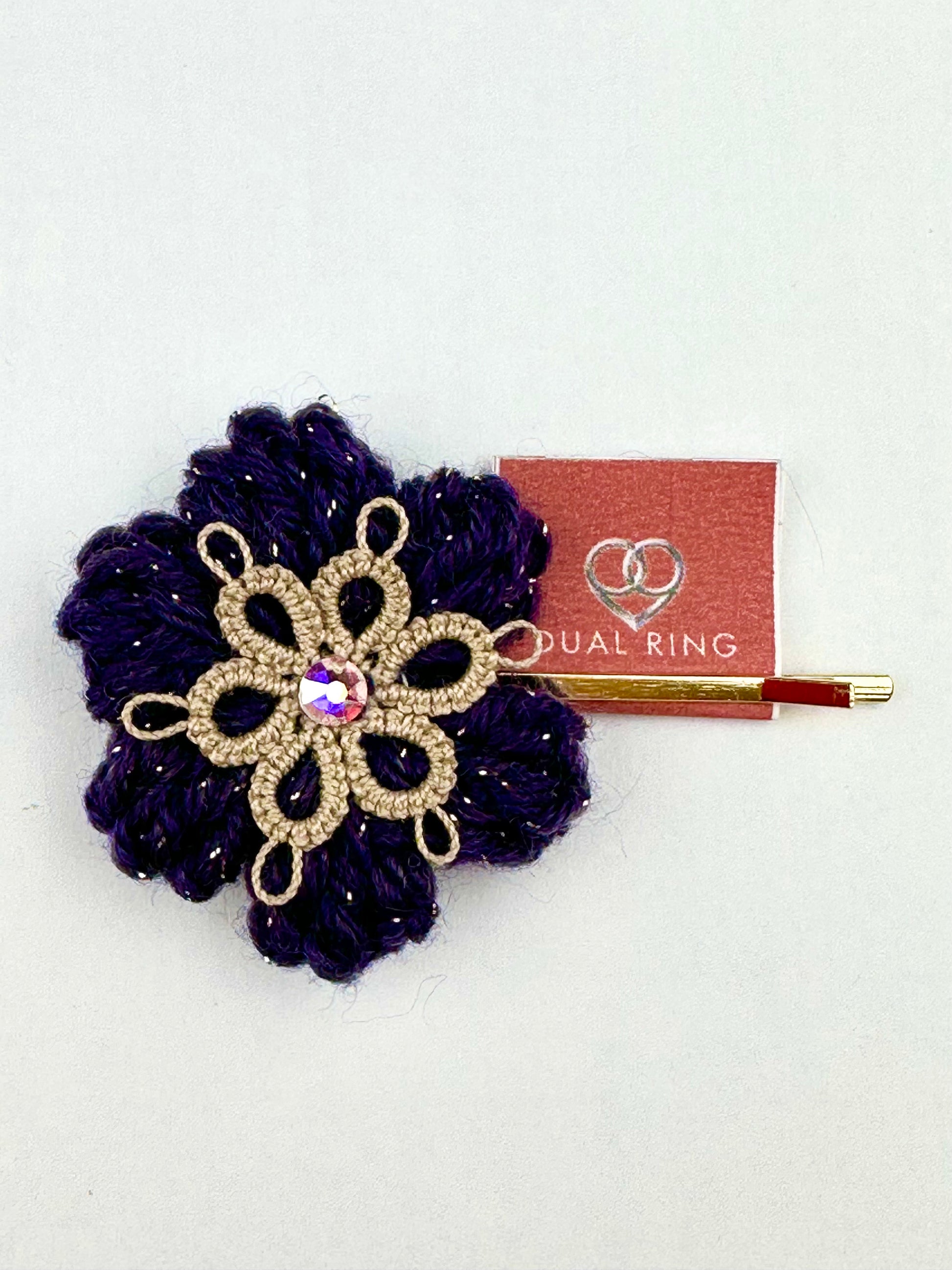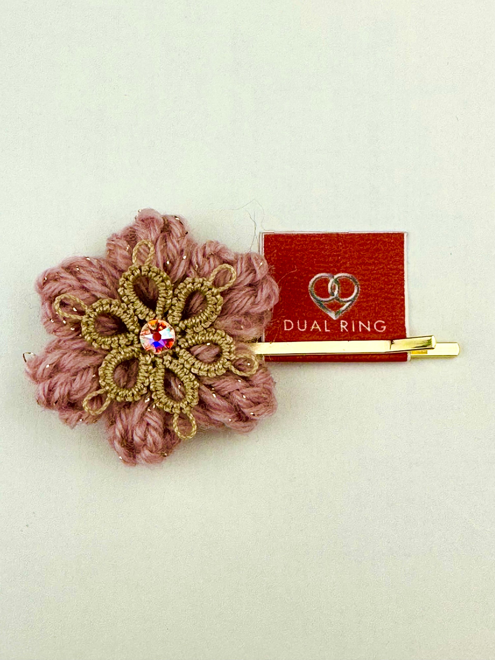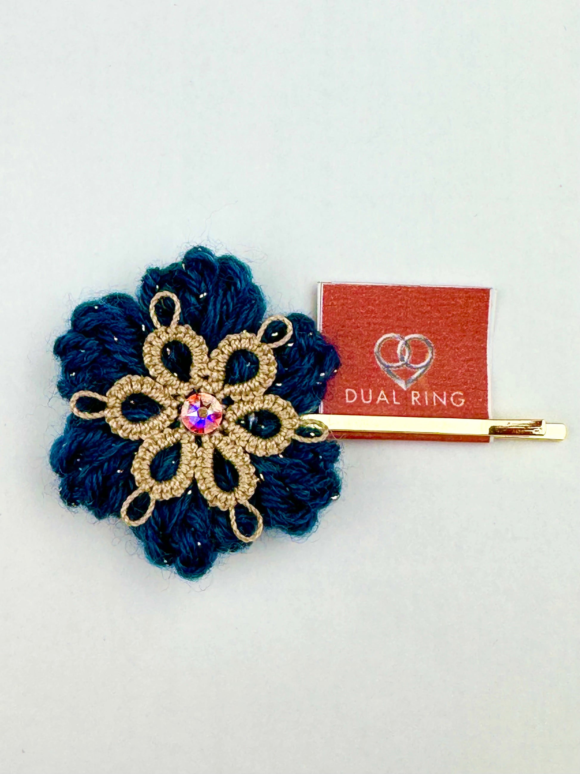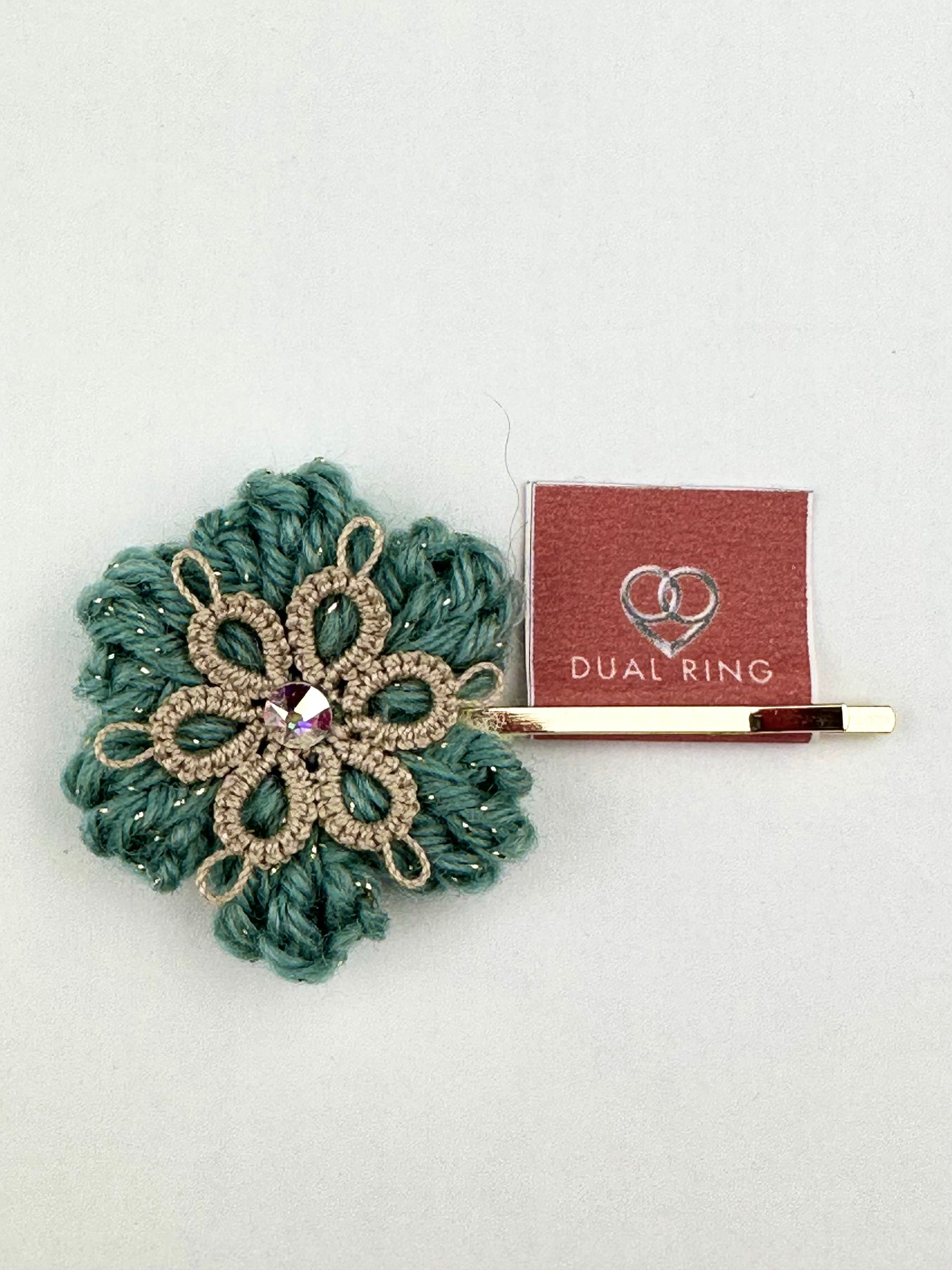 デュアルリング珈琲で染めたタティングレースをあしらえたヘアピンです。