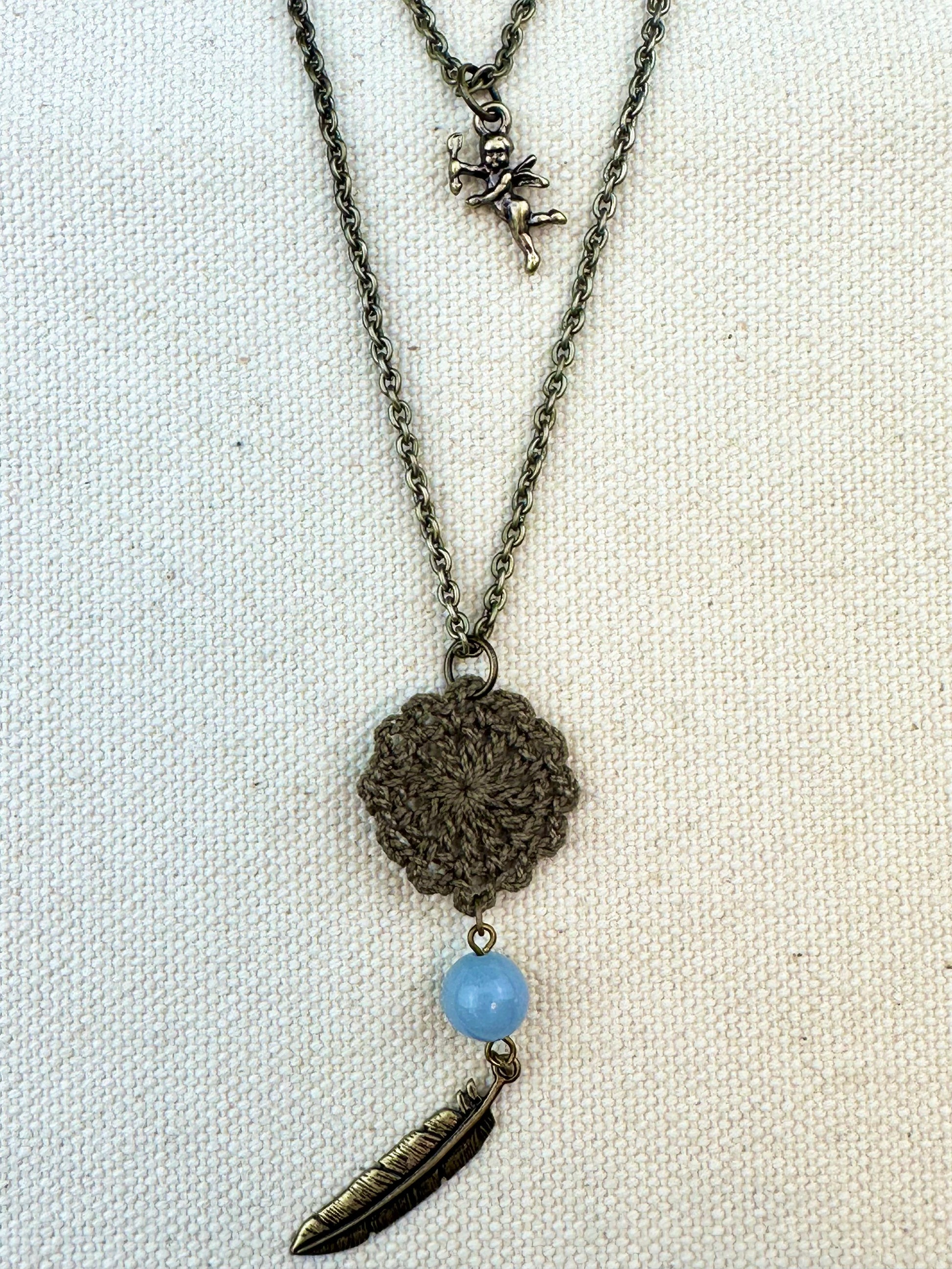 デュアルリング珈琲で染めたレースをあしらえたネックレスです。