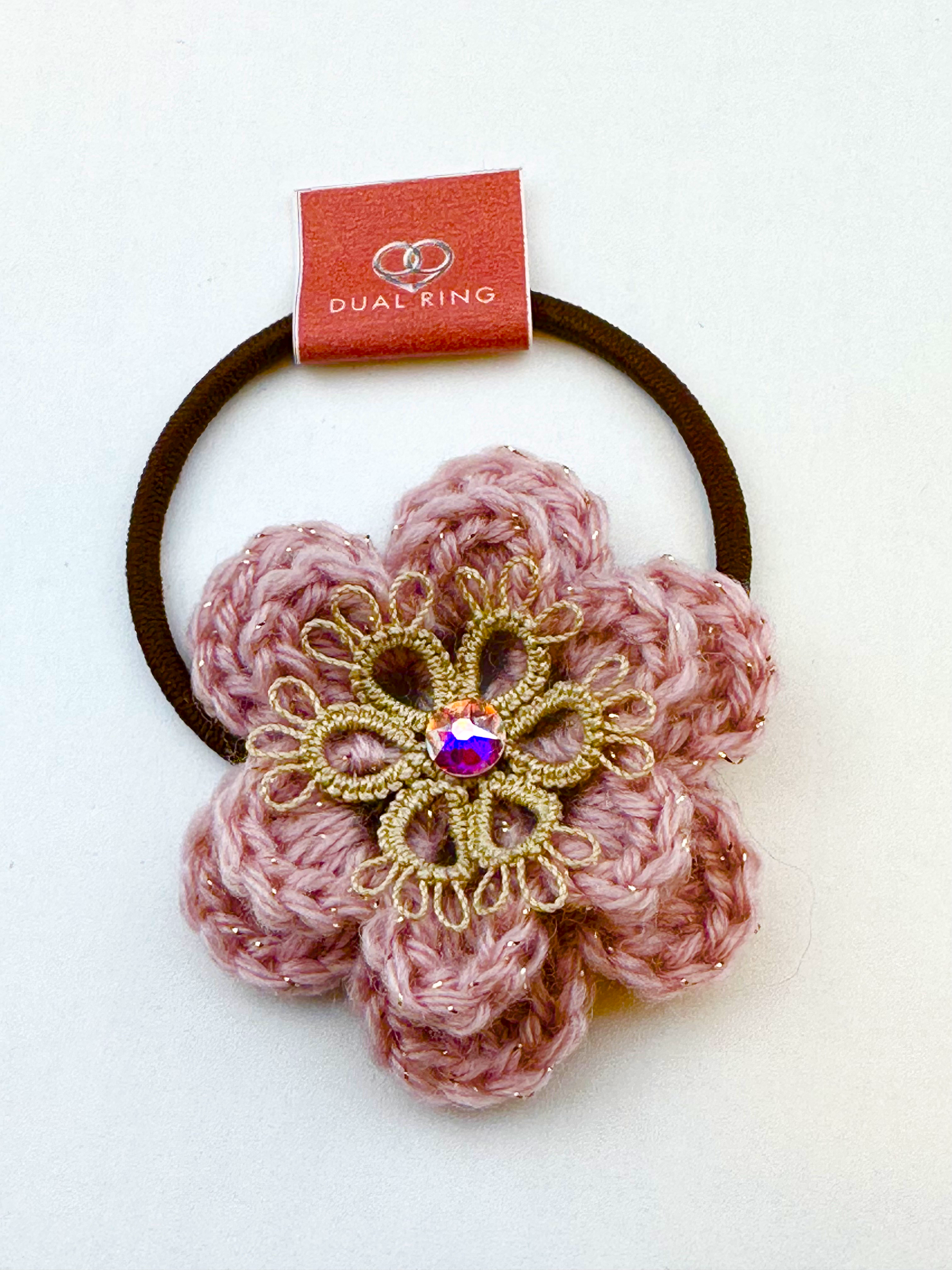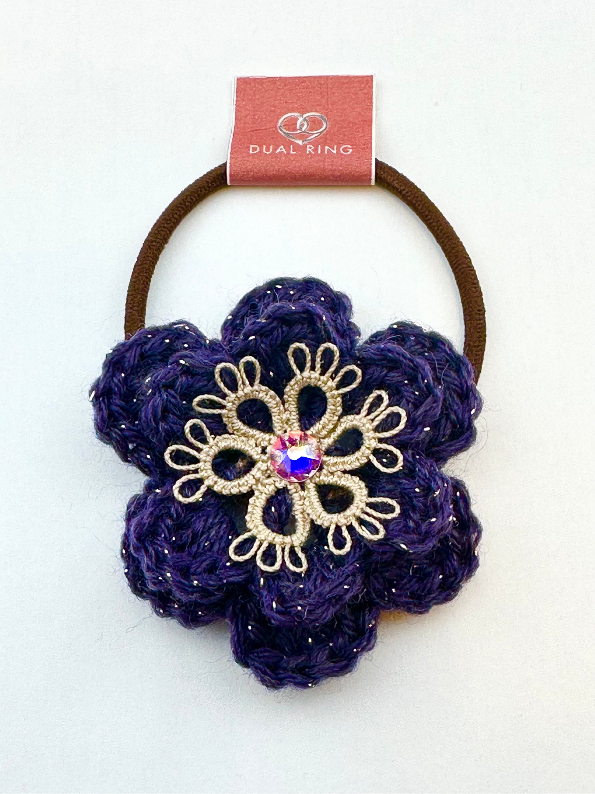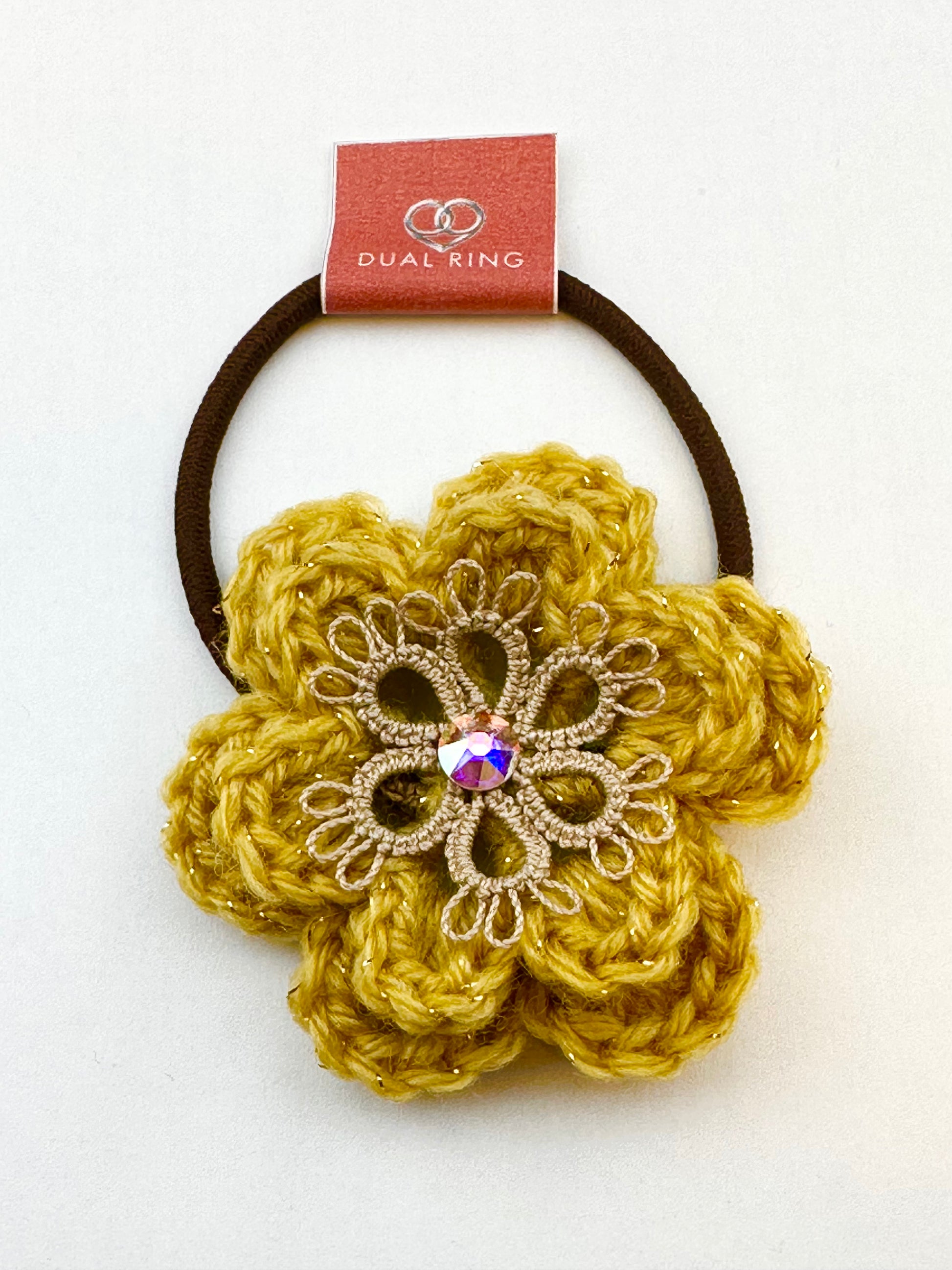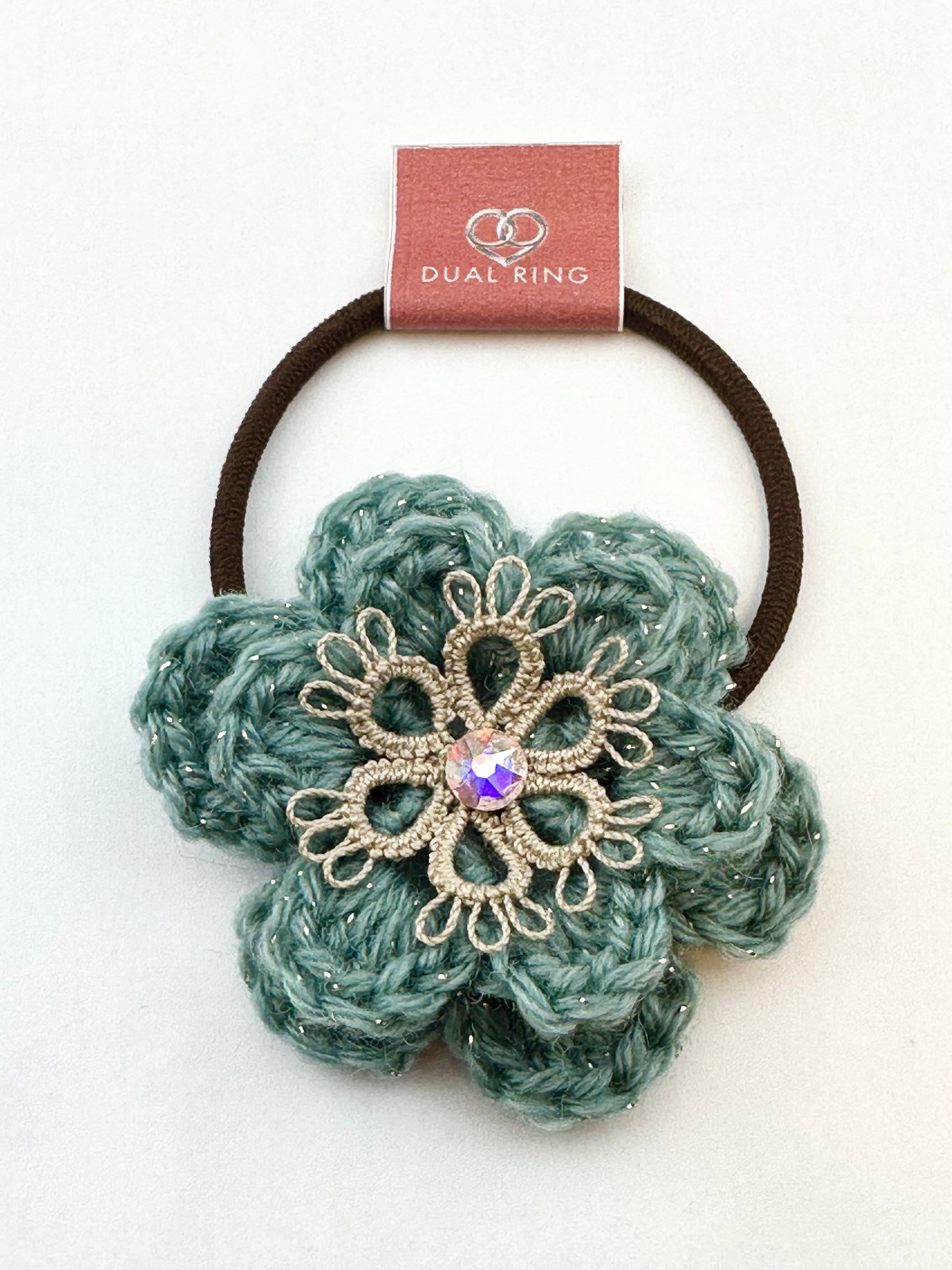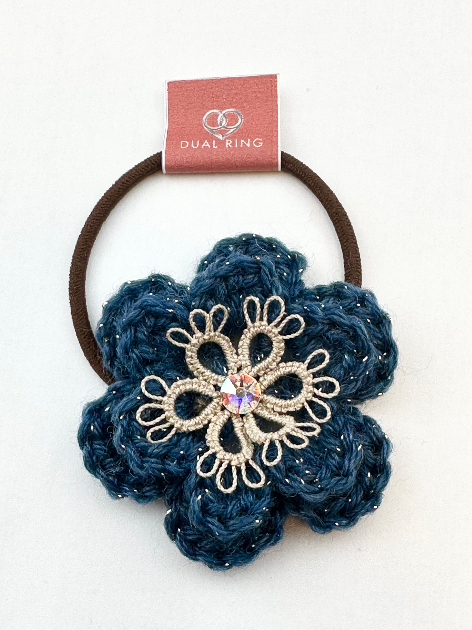 デュアルリング珈琲で染めたタティングレースをあしらえたヘアゴムです。